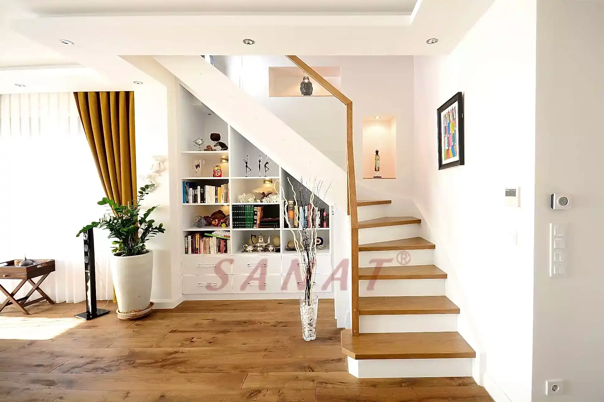 Azerbaycan'da ahşap merdiven montajı, doğal dokusuyla konforlu bir his verir. Ahşap küpeşte, beyaz merdivenle kullanıldığında sıcak bir kontrast oluşturur. Profil seçimi ve yüzey işlemi önemlidir, böylece konfor en üst seviyede kalır.